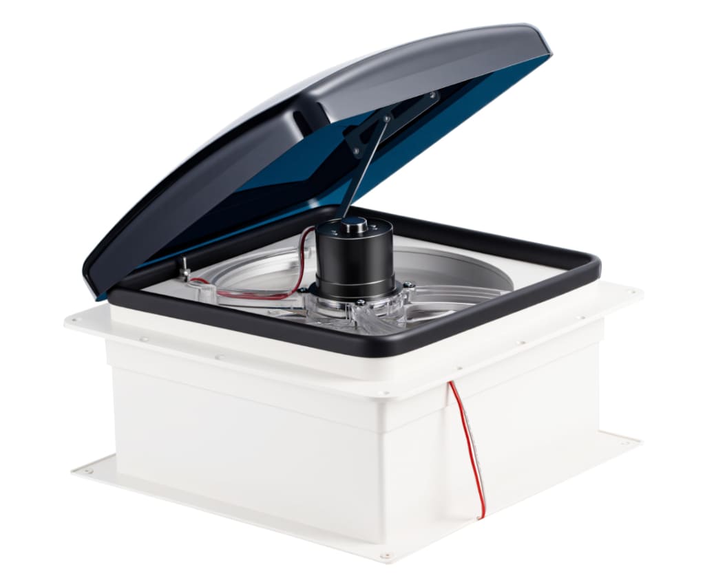 Designed for RVs, trailers, campers, and vans, these quiet and efficient 12V roof vent fans feature 3-speed reversible motors, manual lift domes, and standard 14×14-inch compatibility for reliable intake, exhaust, and circulation.